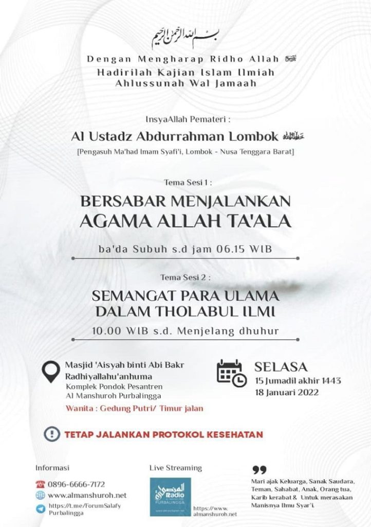 Tags: Ahlus SunnahAhlus Sunnah NTBahlussunnahntb.comAl Manshuroh PurbalinggaAl Ustadz Abu Usamah Abdurrahman Lombok HafidzhahullahAudio KajianBersabar Menjalankan Agama Allah Ta'alaKajianKajian Islam Ilmiah Ahlussunah Wal JamaahKajian IslamiKomplek Pondok PesantrenMasjid Aisyah binti Abi BakrPurbalinggaRadio Islam NTBRIISemangat Para Ulama dalam Tholabul Ilmi