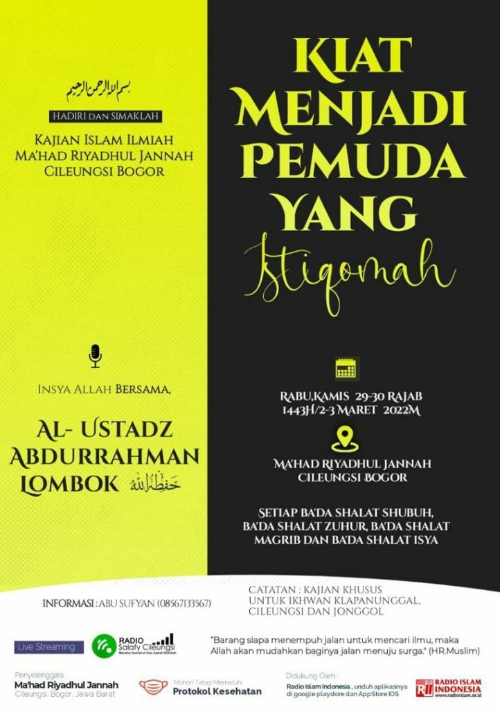 Kajian Islam Ilmiah Ma’had Riyadhul Jannah Cileungsi Bogor